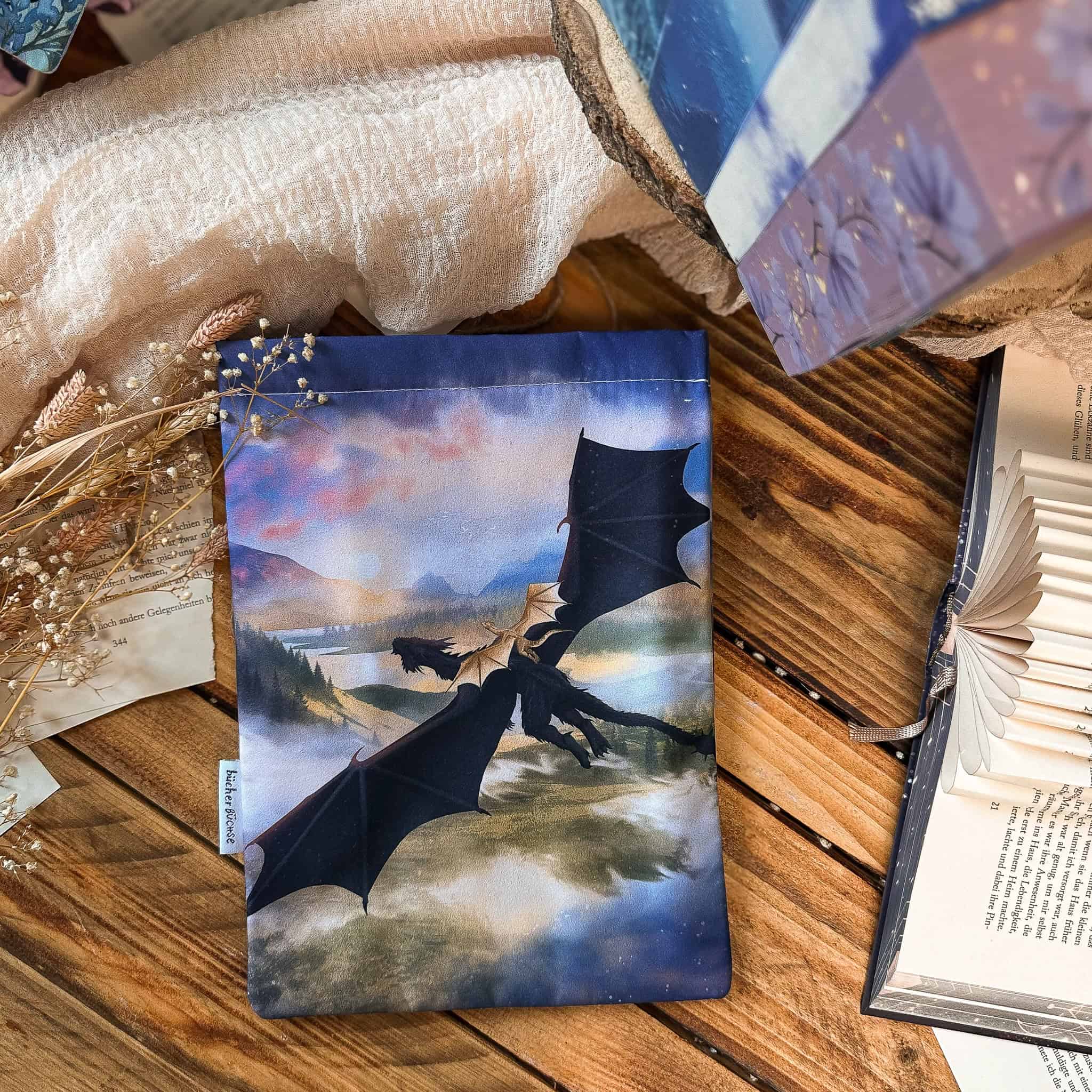 Material: wasserabweisendes Polyester, waschbar bei 30 Grad. Sie hält deine Bücher immer trocken und warm!