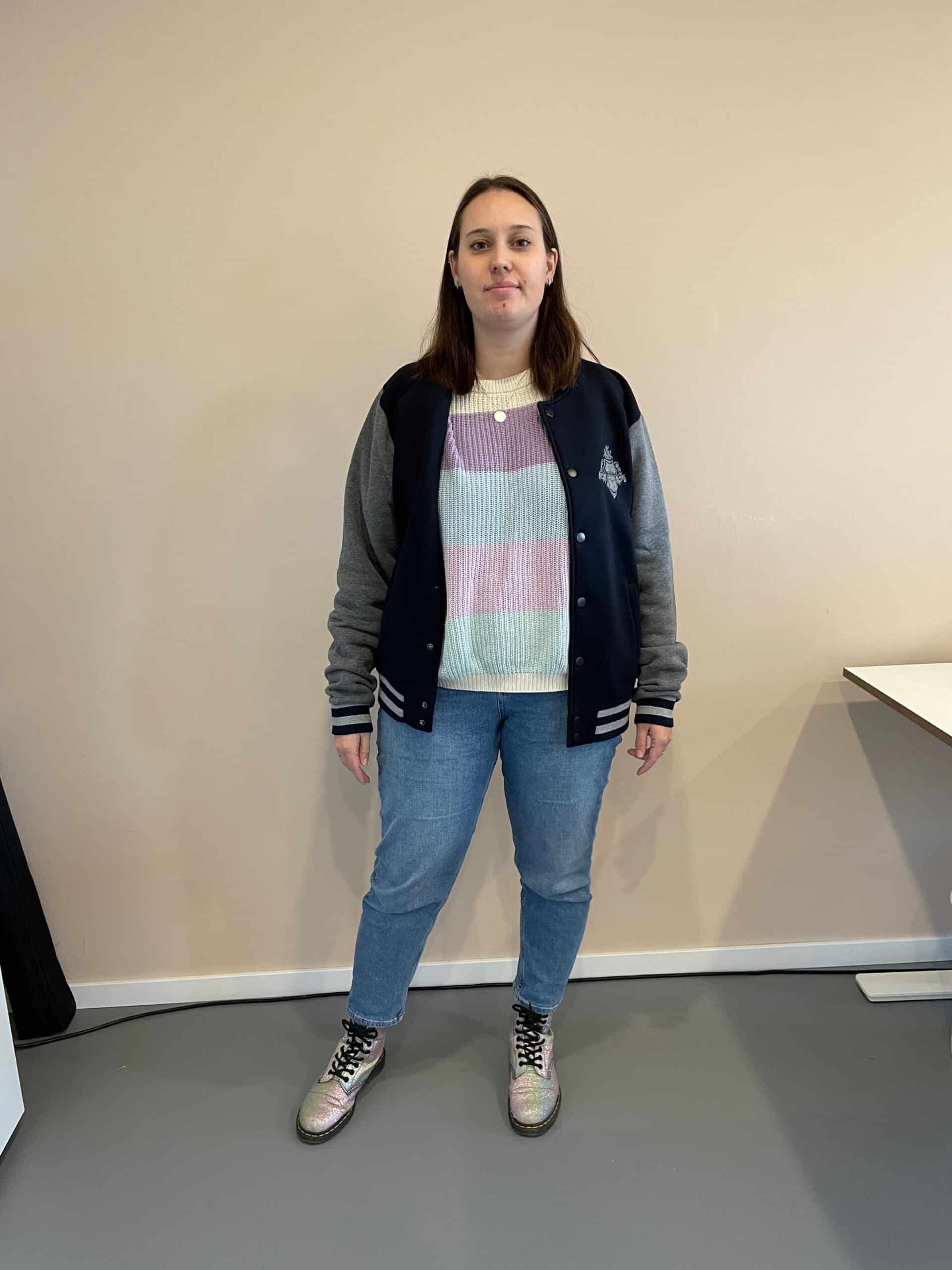 Bei den Fotos siehst du unsere Models, die die Collegejacken tragen. Unser Gründerin Lisa (braune Haare) ist 1,68 m groß und trägt Größe M & L. Isa ist 1.61 m groß und trägt Größe S. Christoph ist 1.88 m groß und trägt Größe XL.