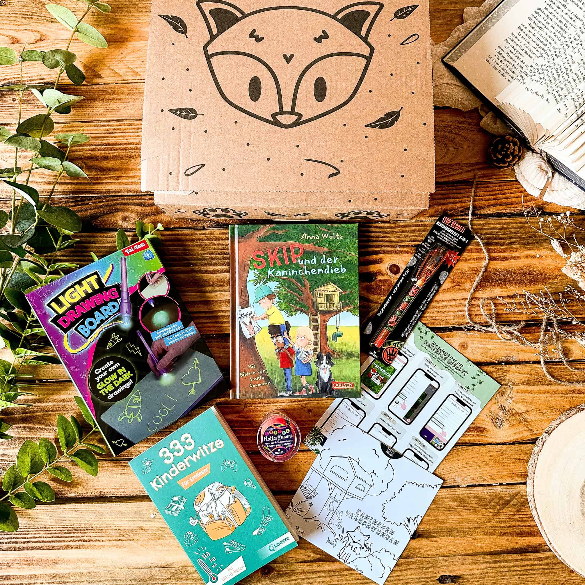 Dazu gibt es 2-3 Artikel zum Basteln und Bespielen und natürlich altersgerechte digitale Inhalte.